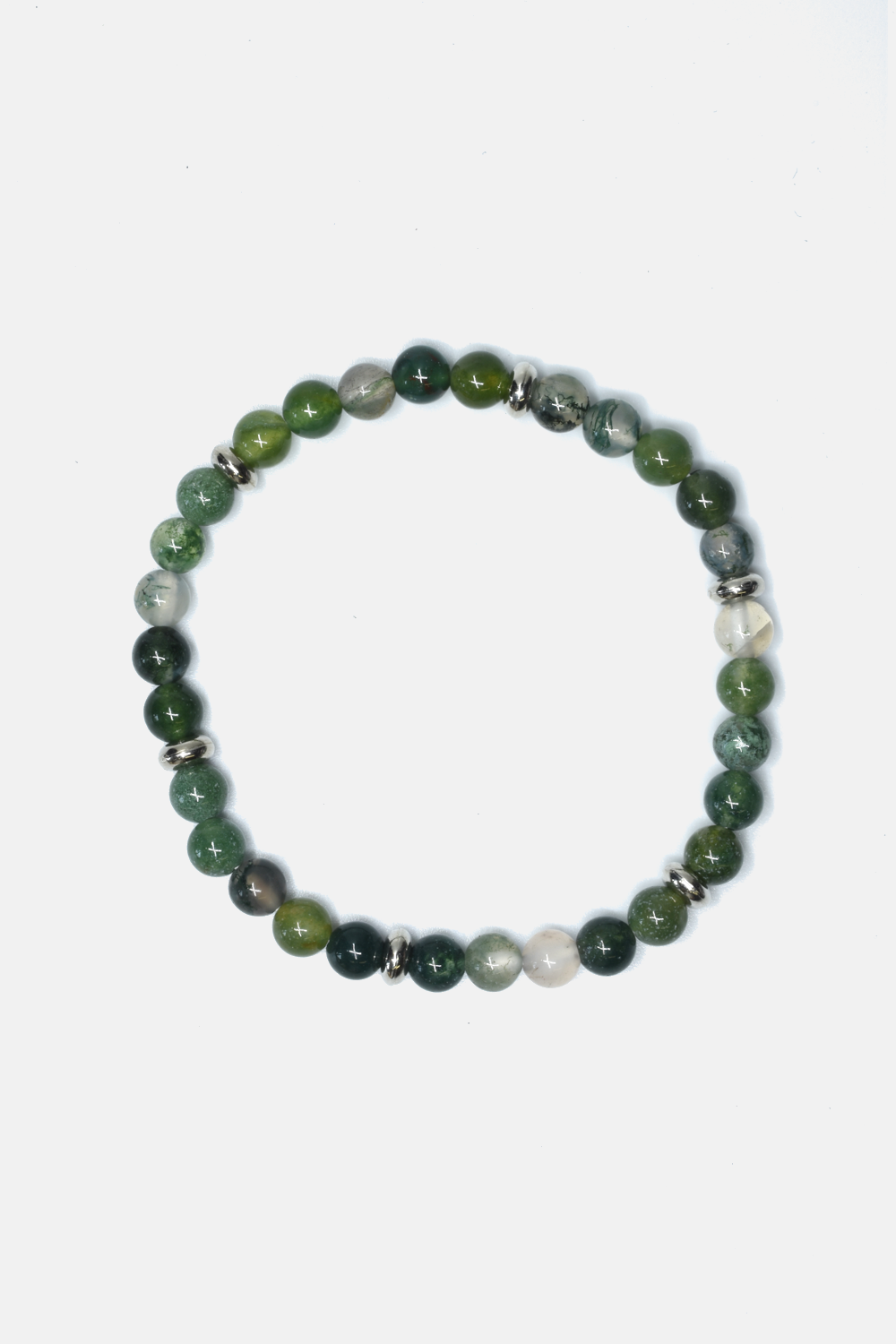 MOSS AGATE STRETCH BEADED BRACELET