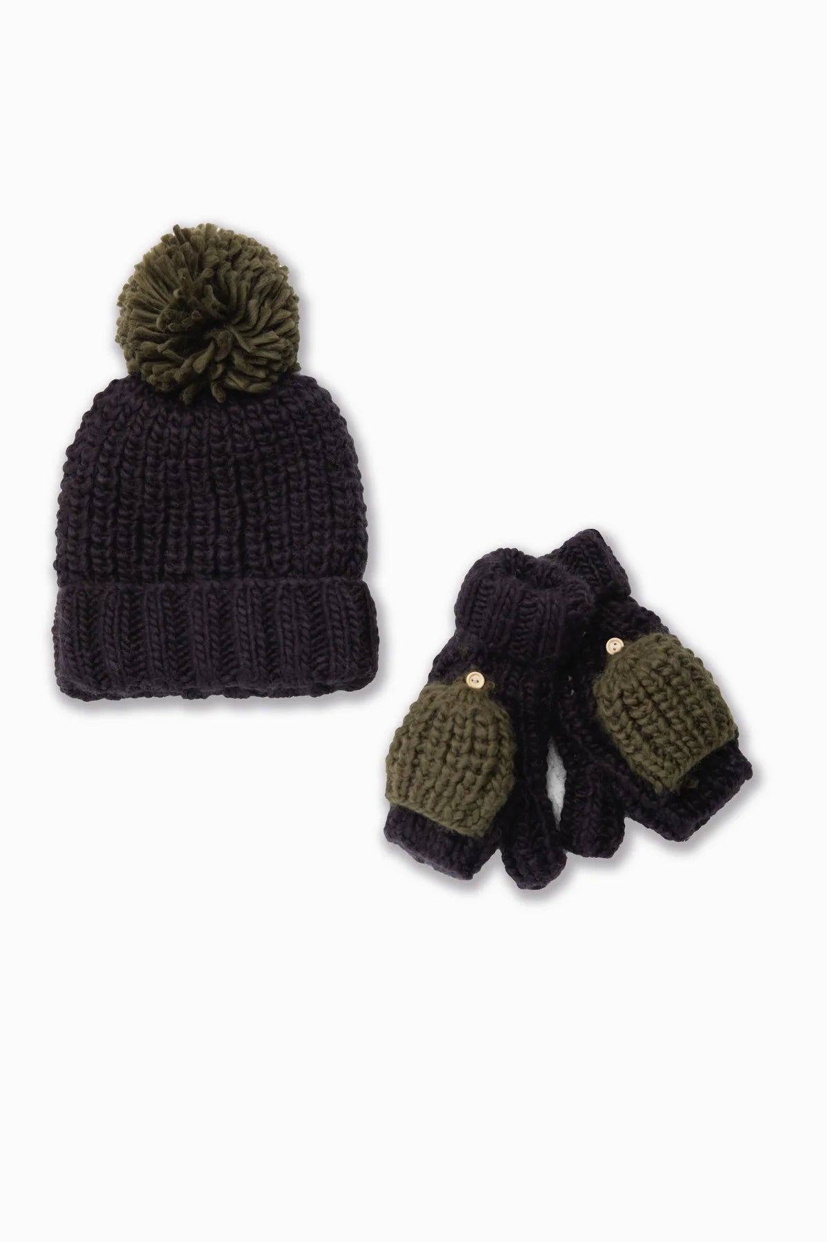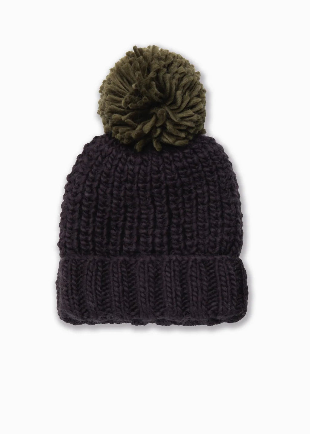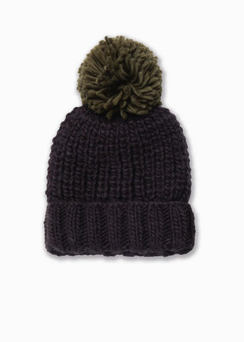 POM POM BEANIE - BLACK + OLIVE