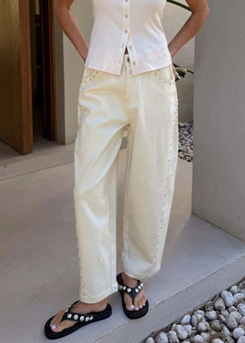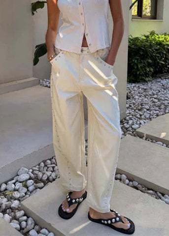 ECRU STUDDED JEANS - 8