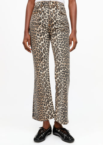 GANNI BETZY CROPPED DENIM IN LEOPARD Sale