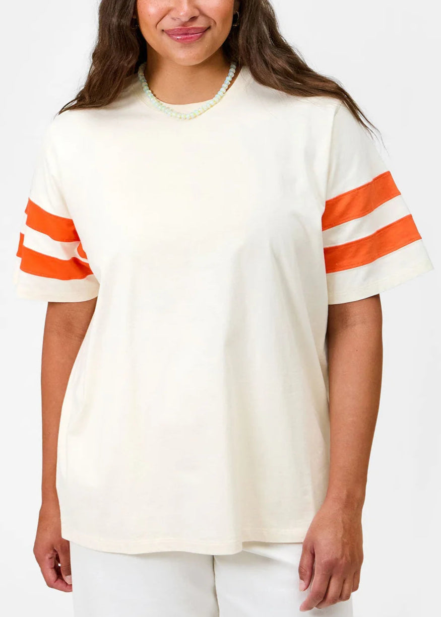 CLARE V. ORIGINAL VARSITY TEE - CREAM / ORANGE / SMALL