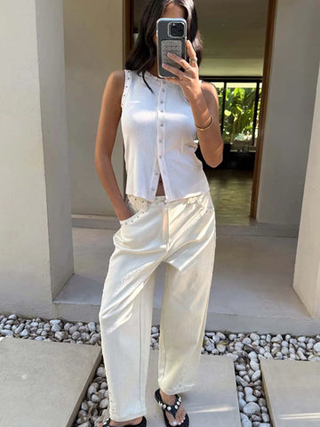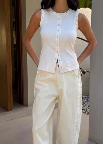 ECRU STUDDED BUTTON TANK Sale